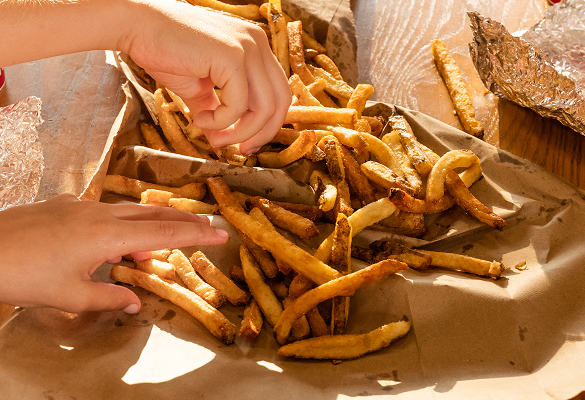 Unsere Pommes frites werden nach „Boardwalk“-Manier frittiert, d. h. sie werden jeden Tag vor Ort von Hand geschnitten und in raffiniertem Erdnussöl in einem dreistufigen Verfahren frittiert: Vorgaren, Abkühlen und Fertiggaren. Die Erhitzungseigenschaften und die Beschaffenheit des Erdnussöls ermöglichen einen reibungslosen Ablauf dieses Prozesses und die Qualität des Bratens, für die wir bekannt sind. Wir sind der Meinung, dass Erdnussöl dem von uns gewünschten Geschmacksprofil entspricht.