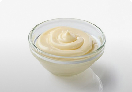 A thick smooth layer of Heinz mayonnaise, always evenly spread.