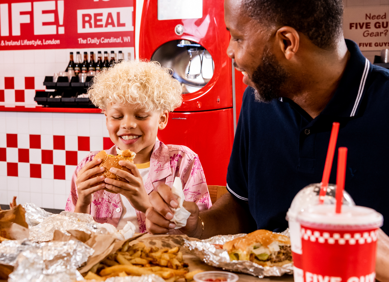 Was Five Guys ausmacht, ist einfach: gute Musik, der Geruch frisch zubereiteter Burger und natürlich Erdnüsse.